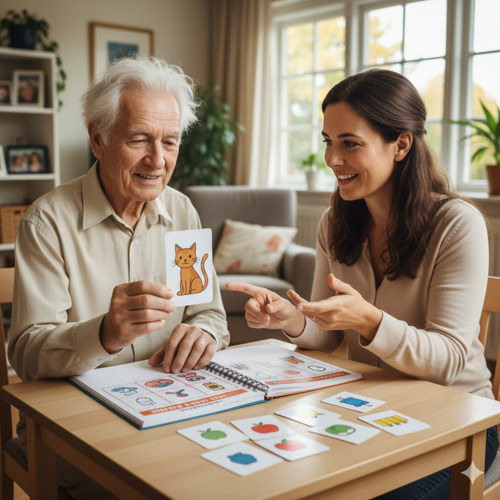 W niektórych sytuacjach niezbędne może się okazać wsparcie psychologiczne, szczególnie gdy pojawiają się problemy z mową. Ciepłe relacje rodzinne i obecność bliskich motywują seniorów do codziennych rozmów i ćwiczeń, co w efekcie pozytywnie wpływa na ich językowe oraz poznawcze funkcjonowanie.